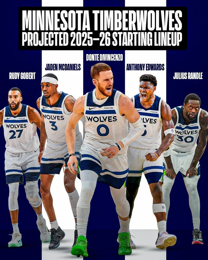 其写道:森林狼正在为 2025-26 赛季重整旗鼓,打造一套兼具得分、防守和多样性的均衡首发阵容。